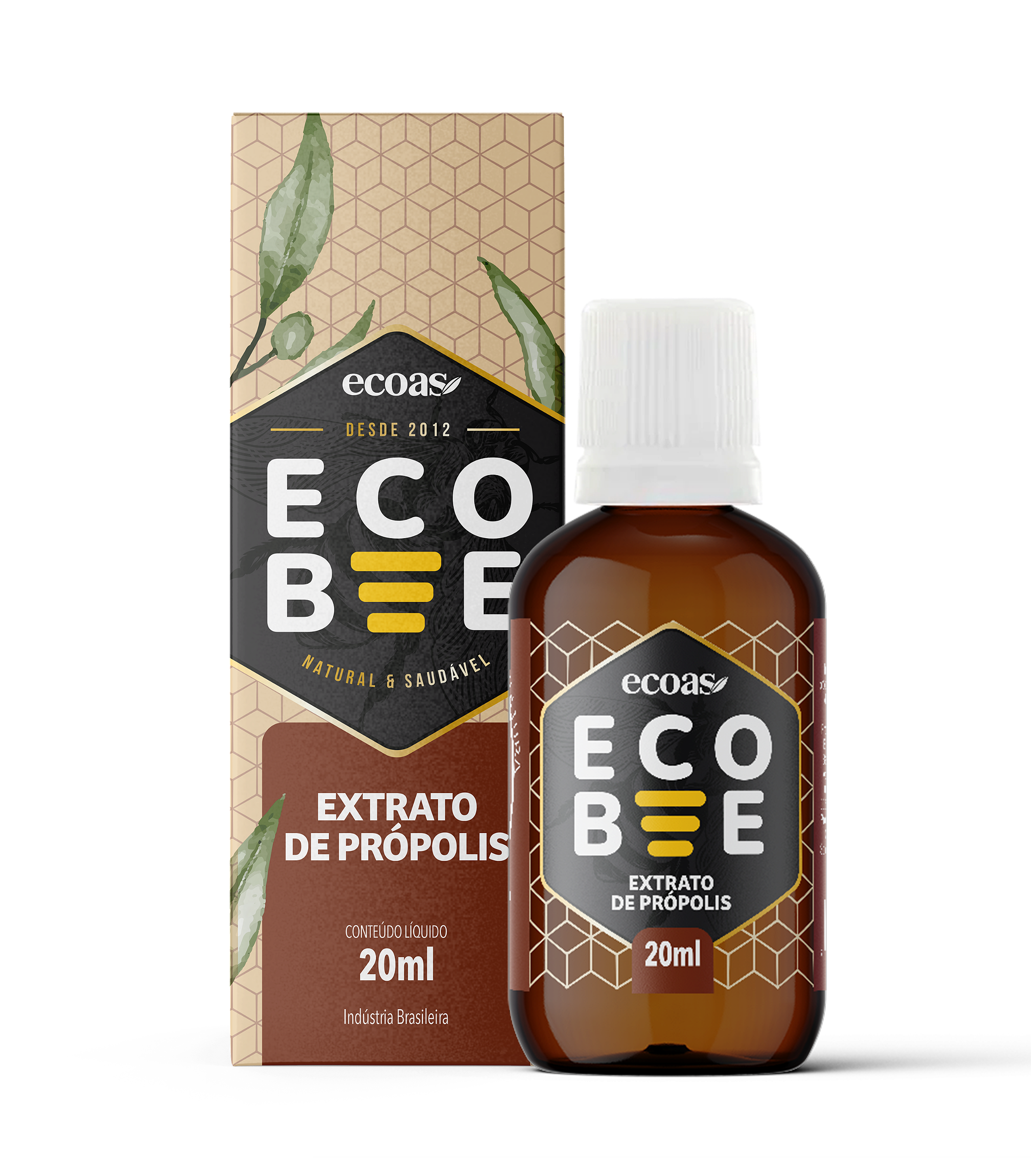 Álcool neutro e própolis. Extrato seco mínimo 11%. Ação antibiótica, anti-inflamatório, antioxidante, cicatrizante e aumenta a imunidade.
